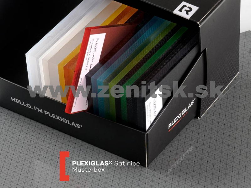 Plexisklo dosky s pieskovaným povrchom Plexiglas SATINICE sa dodávajú v 3 variantoch: SC, DC a DF. Označenie SC znamená, že dosky majú pieskovaný povrch z jednej strany, druhá strana je lesklá; označenie DC znamená, že dosky majú z oboch strán povrch s pieskovanou štruktúrou; označenie DF znamená, že dosky sú určené na nasvietenie s optimálnym rozptylom svetla. Materiál je UV-nepriepustný, vysoko odolný proti UV žiareniu a poveternostným vplyvom, poskytujeme 10-ročnú záruku na stálosť fyzikálnych vlastností. Obe povrchové strany týchto dosiek z plexiskla sú kryté ochrannou fóliou. Široké použitie v reklame, nábytkárstve, dizajne... K tomuto produktu dodávame špeciálne lepidlá, ktoré po zaschnutí nie sú lesklé, ale vytvárajú dojem pieskovania.