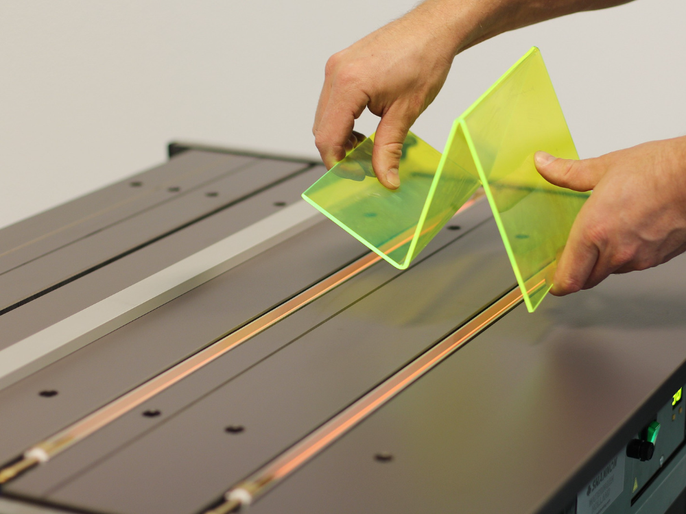 Tieto vykurovacie profily s jedným drôtom možno použiť na väčšine našich ohýbačiek. Každý spodný vykurovací profil má vykurovací drôt, ktorý je výškovo nastaviteľný. Pomocou niekoľkých týchto profilov s jedným drôtom je možné vytvoriť viac ohybov na jedno nahriatie.