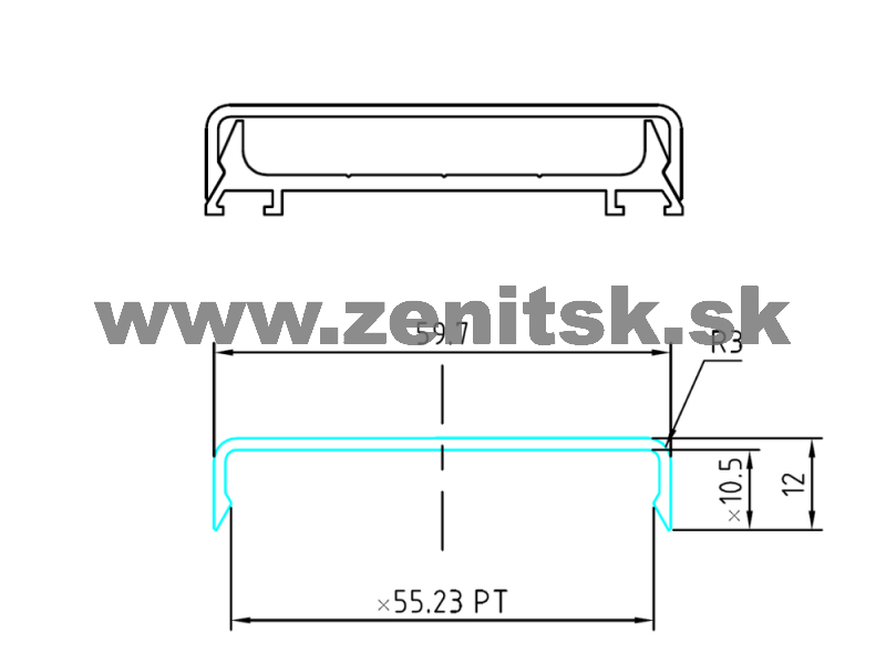 Zaklapávacia krycia hliníková lišta strieborný elox (horná časť)