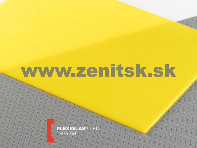 Žlté akrylátové dosky Plexiglas LED 1H74 na nasvetľovanie LED diódami žltej farby. Dosky sú špeciálne vyvinuté predovšetkým pre svetelnú reklamu; materiál je vysoko odolný proti UV žiareniu a poveternostným vplyvom. Obe povrchové strany týchto dosiek z plexiskla sú hladké a vysoko lesklé, pri dodávke sú kryté silnou ochrannou fóliou. Široké použitie v reklame, nábytkárstve či dizajne.
